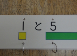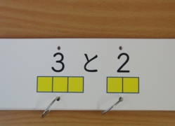 「1+5→6」というように数式にかえ、数タイルも一緒に使いながら、足し算の基本(繰り上がりなし)が学べる内容となっています。