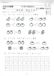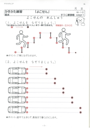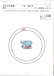 特に数字にとらわれることなく、文字を含めた線の練習(線のなぞり)からはじめる練習帳です。意外にもこのような線の基本から入る練習帳は少なく、これからの文字書きや絵画にも適した構成となっています。数字練習帳として、数の導入(数字や数詞、具体物の数やタイル)などにも触れています。