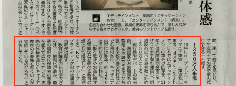 9月9日(金)エデュテインメント:楽しく遊んで「職業」体感の記事内に取材内容が掲載されました。